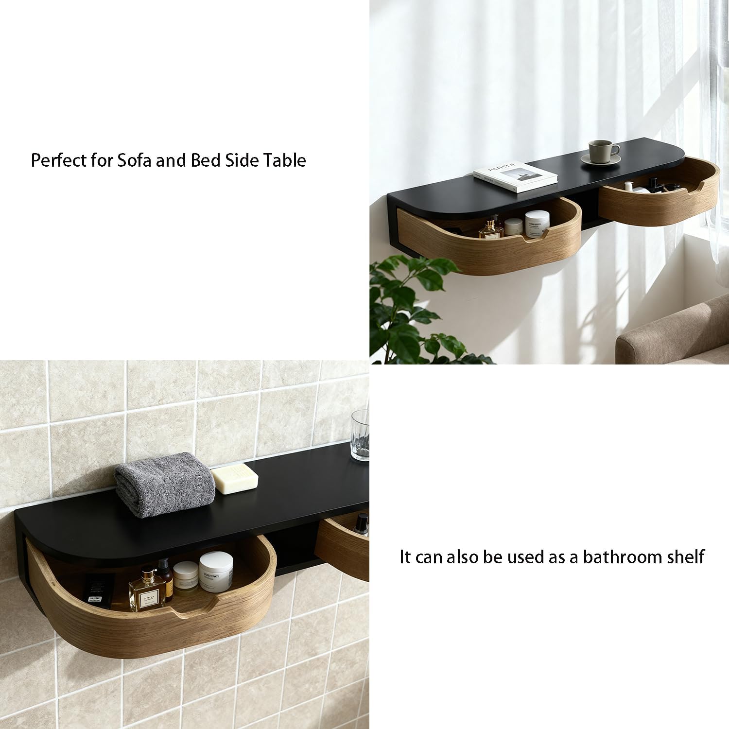 - MULTI-PURPOSE : Whether You Need a Spot for Your Favorite Book, A Glass of Water, or Your Smartphone, This wall shelf can be used for so much. Great as a nightstand shelf, floating side table, floating shelf, bedside floating shelf, nightstand wall shelf, and much more.