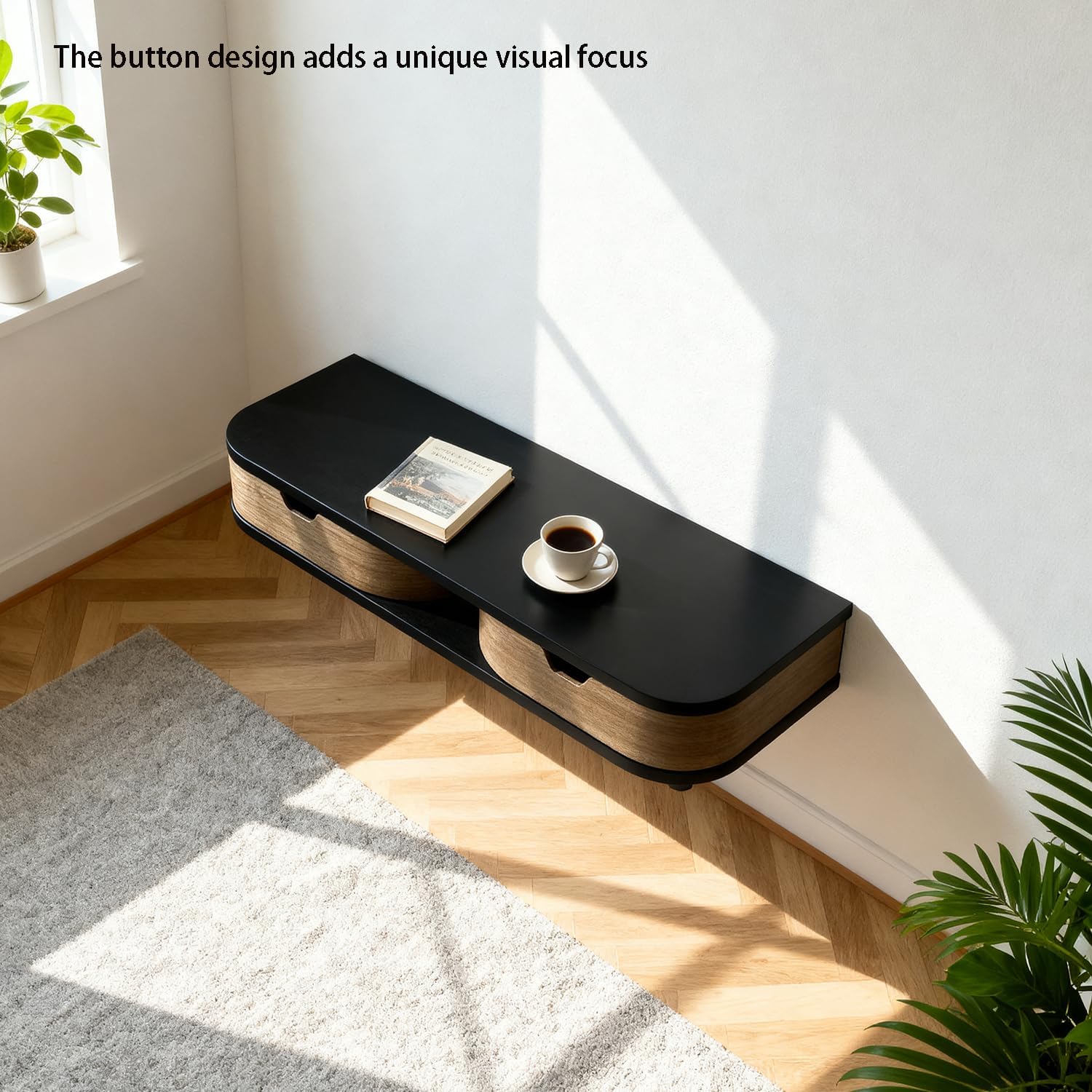 The floating drawers is made of high-quality multilayer board with excellent structural stability, resistant to deformation and cracking. The heat-pressing process further locks in moisture, minimizing the impact of environmental humidity and ensuring a longer lifespan. The Floating Console outer surface is made of medium-density fiberboard with an exceptionally smooth texture and a uniform internal structure. The highly refined fibers and high-pressure molding process result in a surface without any visible wood grain or seams.