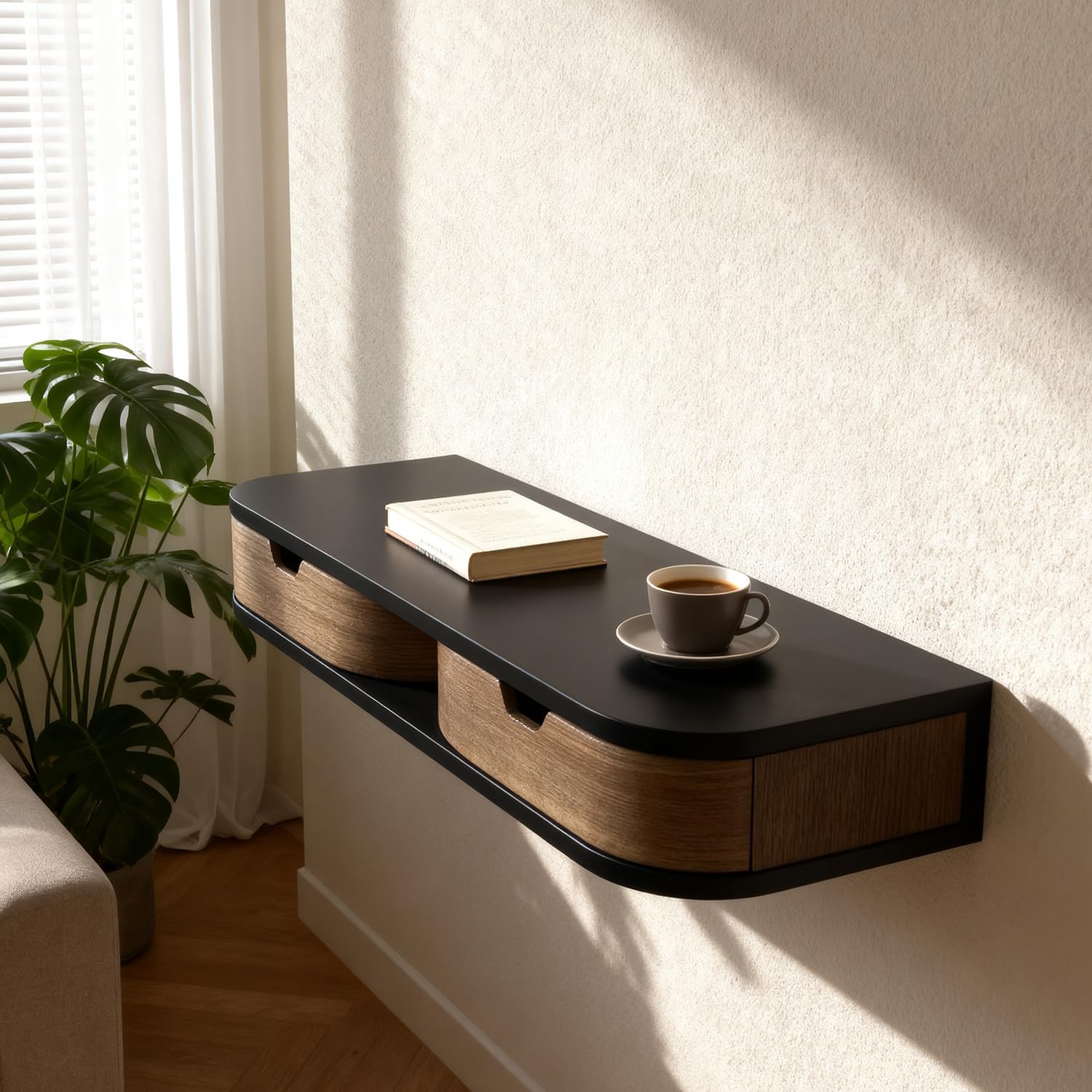 - PREMIUM QUALITY CONSTRUCTION: Crafted from durable materials, our wall attachable nightstand is designed ,The floating drawers is made of high-quality multilayer board with excellent structural stability, resistant to deformation and cracking. The heat-pressing process further locks in moisture, minimizing the impact of environmental humidity and ensuring a longer lifespan.