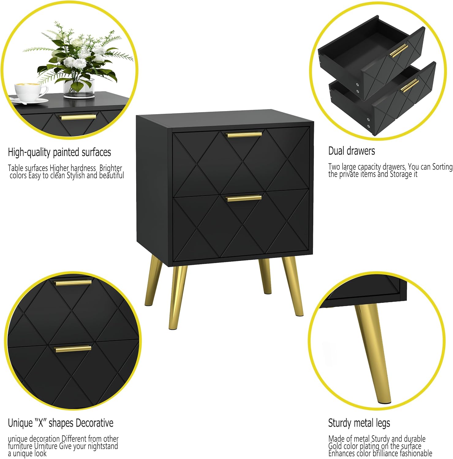 The nightstand with Unique decorations, Make it Different from other furniture,Gives your nightstand a unique look