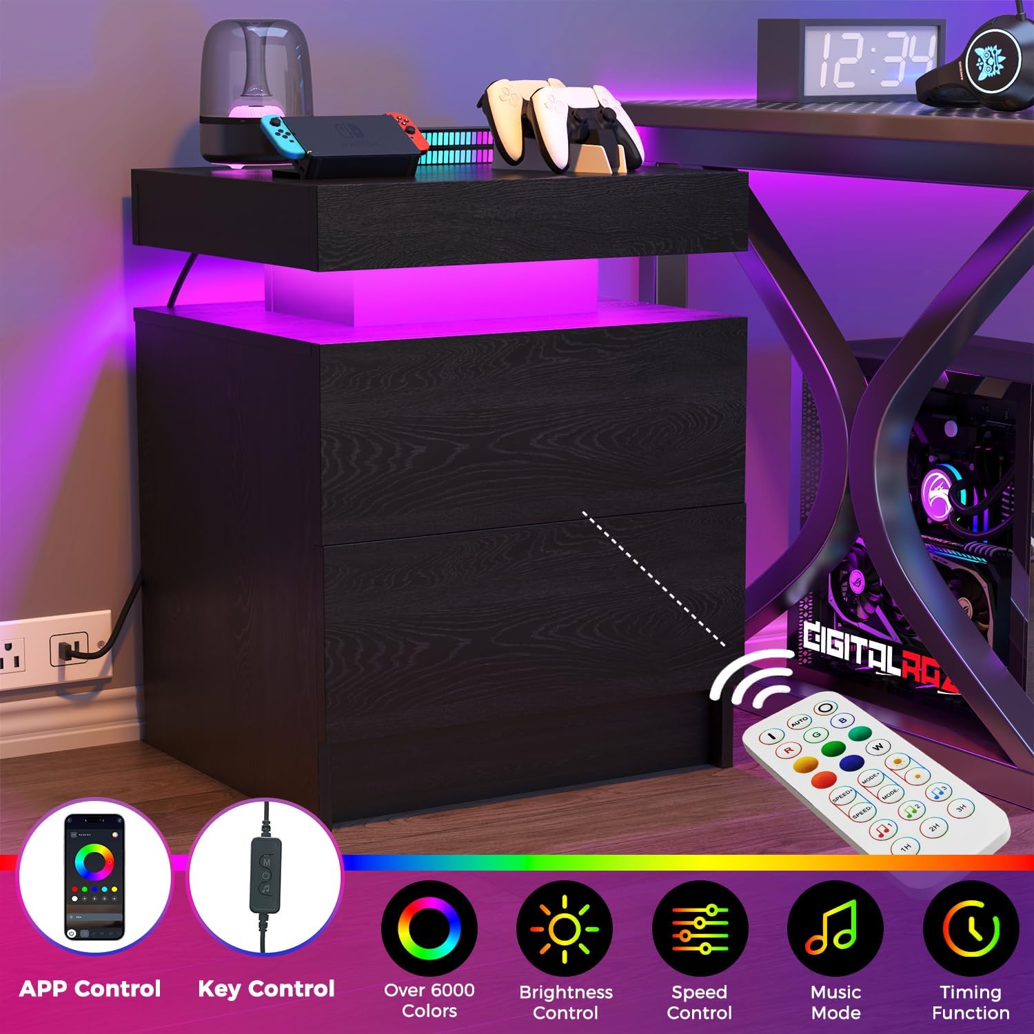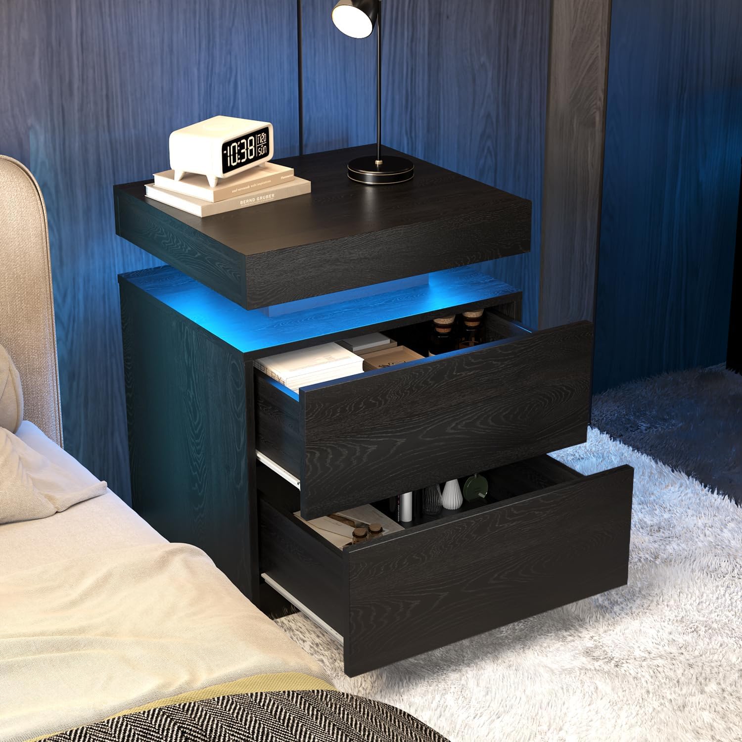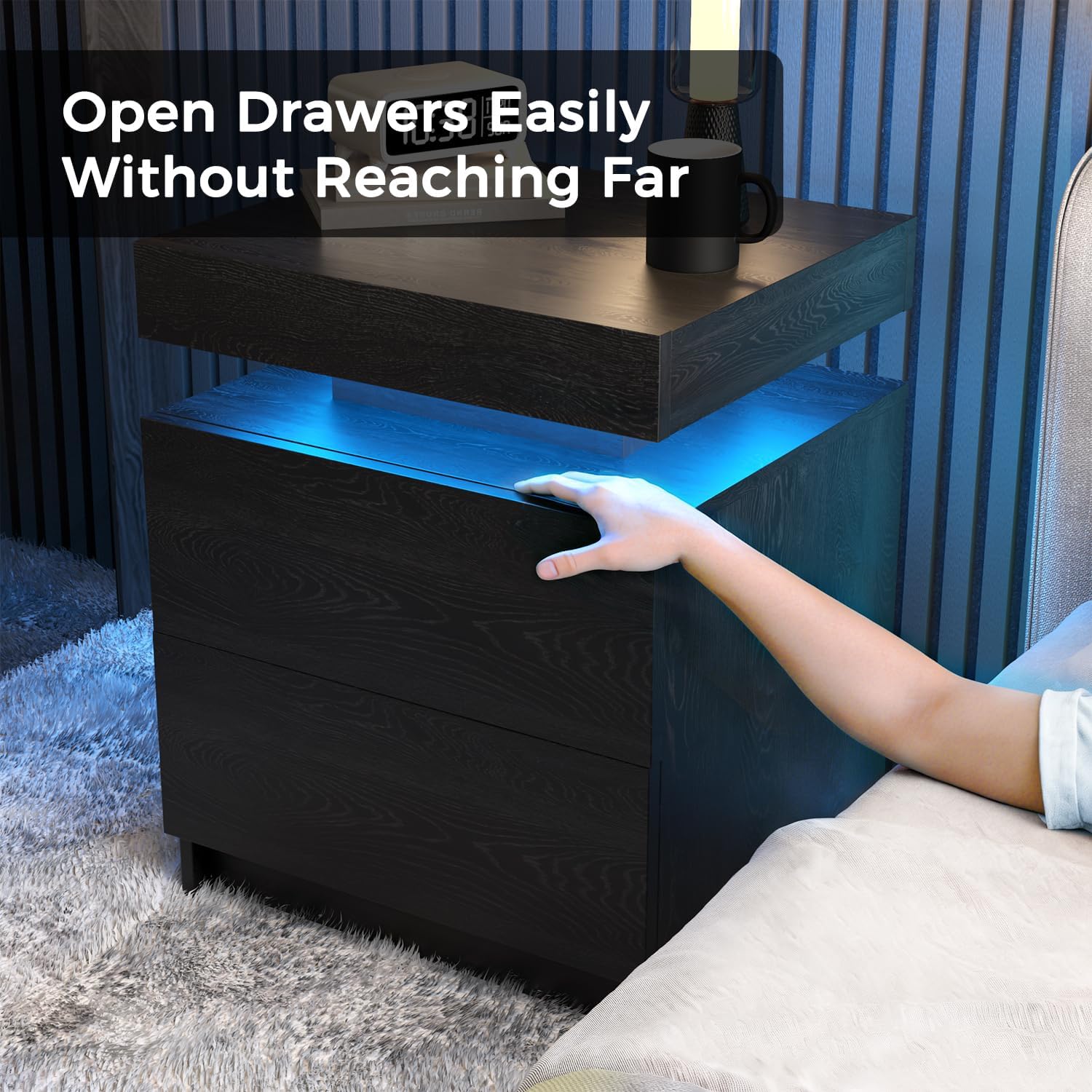 Full 12-inch drawer slides provide deeper storage and smoother operation for larger bedside essentials.