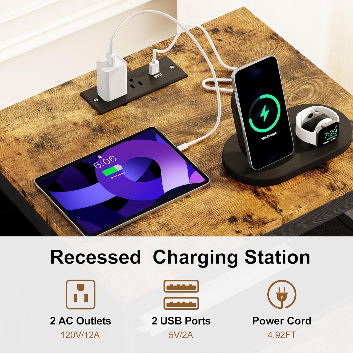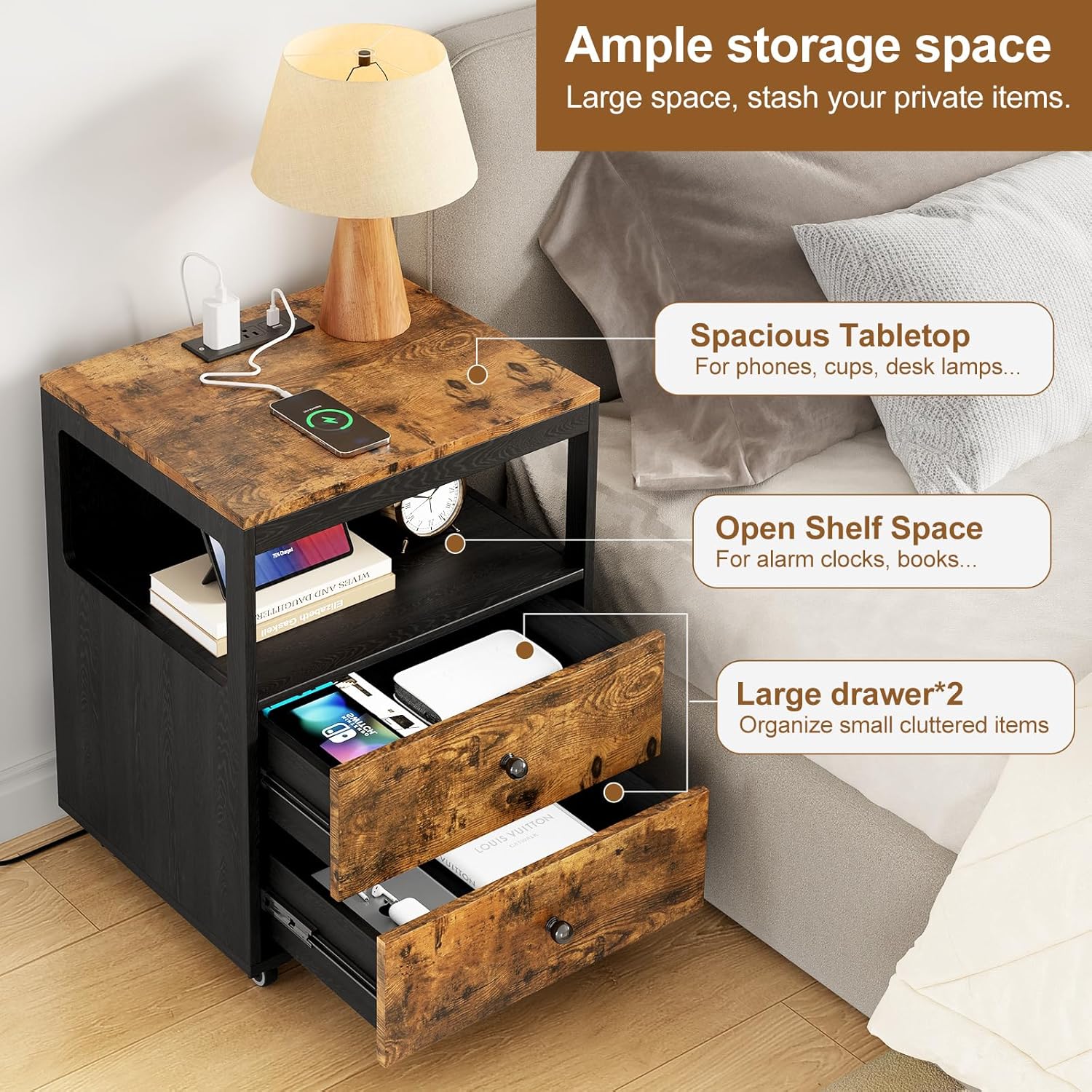 Do you need a nightstand that not only meets your storage needs but also charges your phone, iPad, and other mobile devices? This nightstand with a built-in charging station is designed specifically for your needs!It even has more surprising features.: