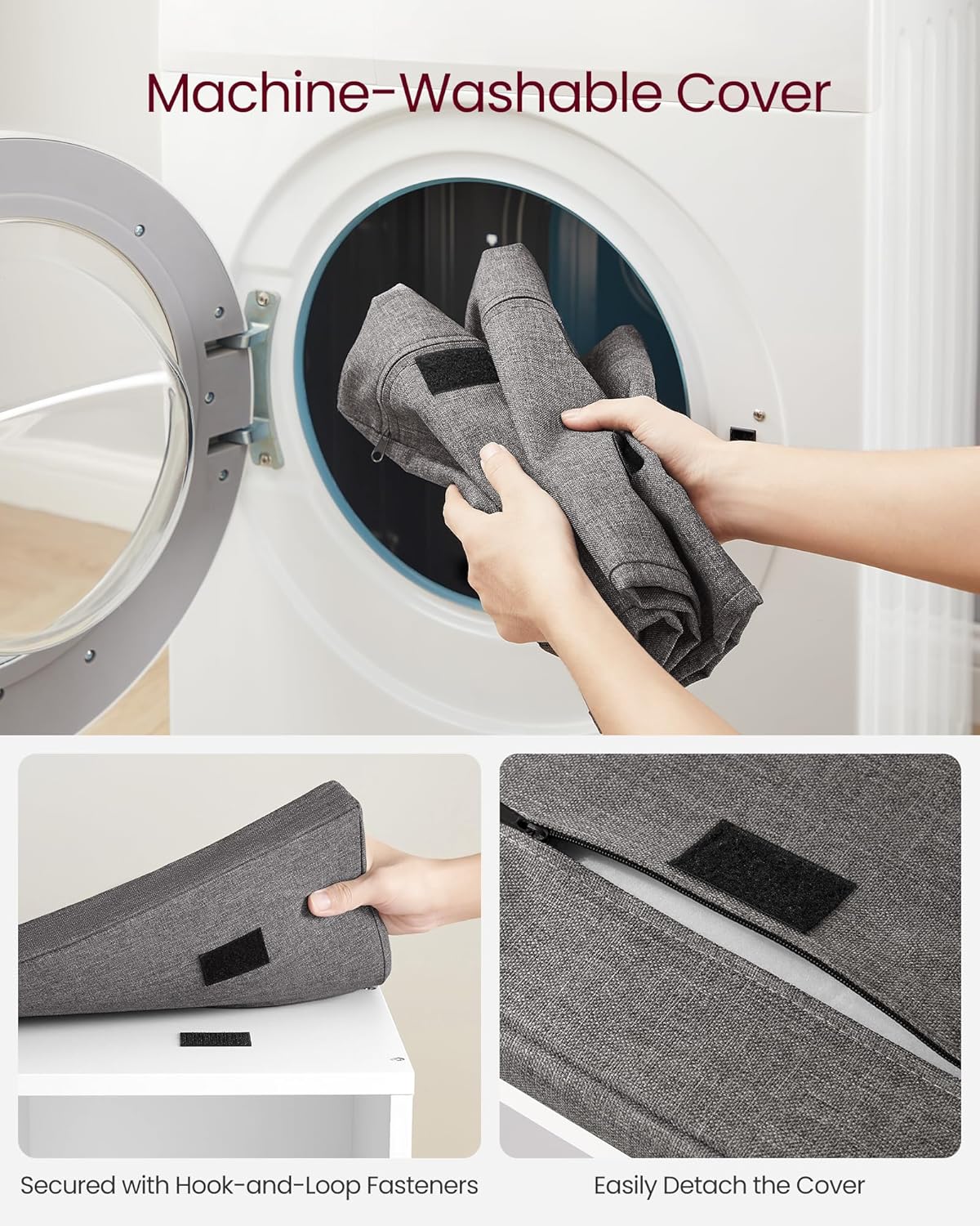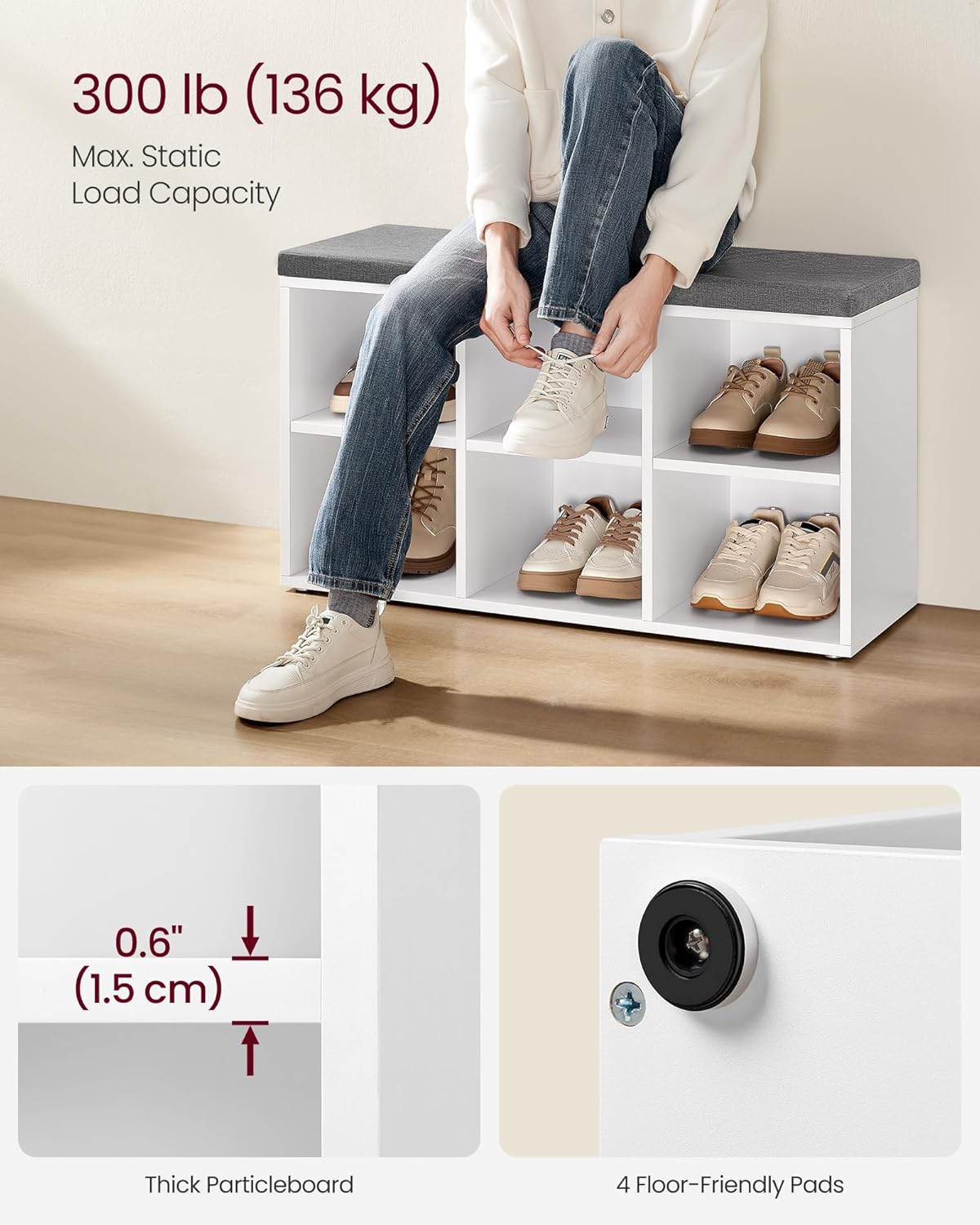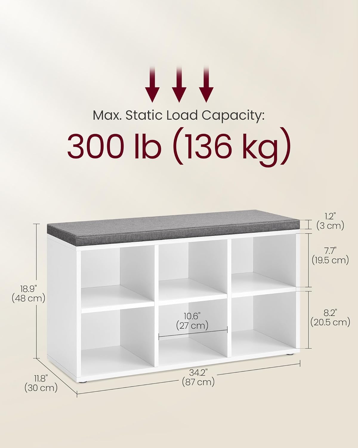 With neutral white and gray colors, this shoe bench will match with a variety of existing furniture in your home.